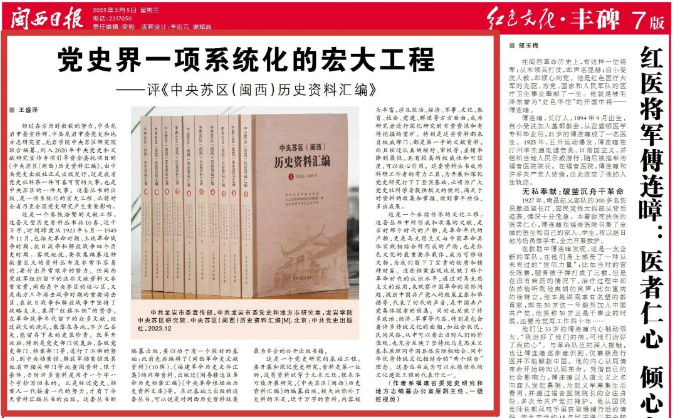 • 黨史界一項系統化的宏大工程——評《中央蘇區(閩西)歷史資料匯編》